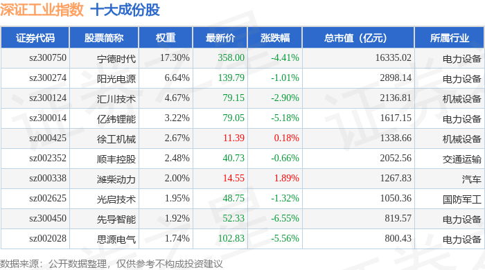 资金流向方面,深证工业(399615)指数成份股当日主力资金净流出合计93.58亿元,游资资金净流入合计22.99亿元,散户资金净流入合计70.58亿元。成份股资金流向详情见下表: