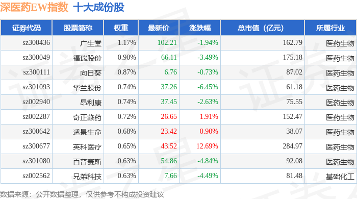 证券之星消息,10月14日,深医药EW(399676)指数报收于3740.28点,跌0.82%,成交508.6亿元,换手率2.09%。当日该指数成份股中,上涨的有77家,英科医疗以12.69%的涨幅领涨,下跌的有134家,一品红以14.3%的跌幅领跌。