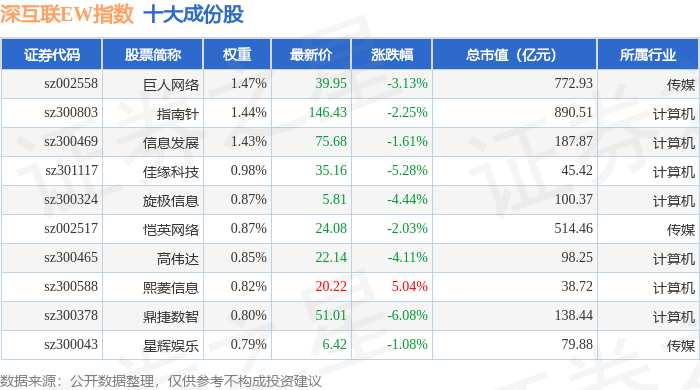 近10日内深互联EW(399677)指数成份股做了调整,剔除了1只股票。