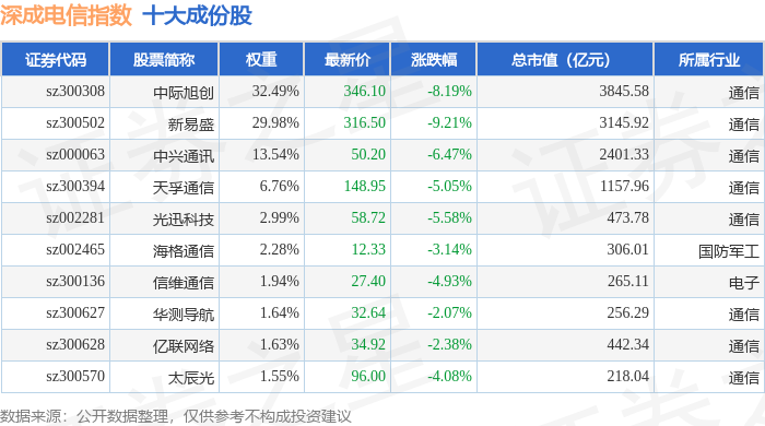 深成电信(399688)指数十大成份股详情如下: