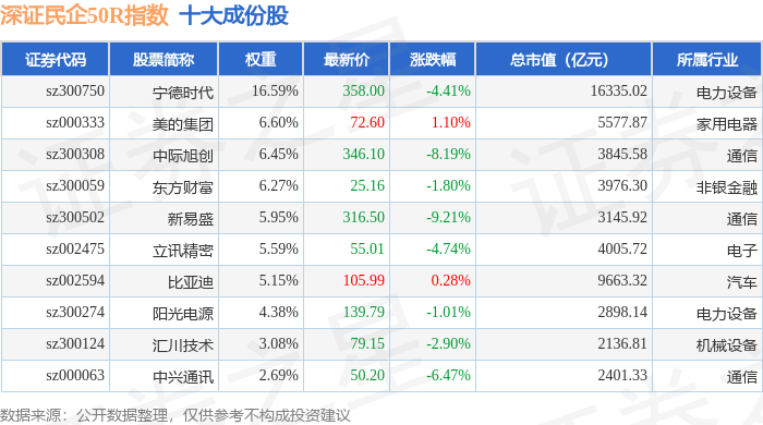 深证民企50R(470057)指数十大成份股详情如下:
