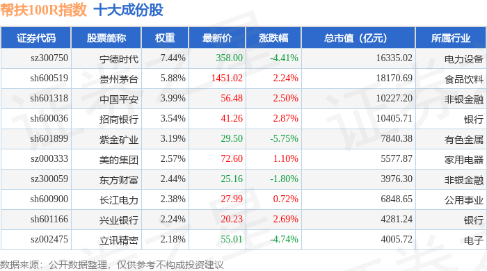 帮扶100R(480065)指数十大成份股详情如下: