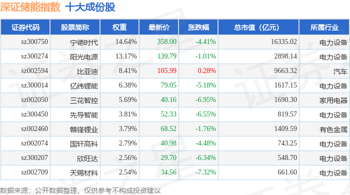 深证储能(970036)指数十大成份股详情如下: