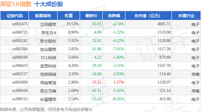 证券之星消息,10月14日,深证XR(970046)指数报收于2162.75点,跌3.53%,成交795.07亿元,换手率3.39%。当日该指数成份股中,上涨的有1家,领益智造以1.37%的涨幅领涨,下跌的有48家,长盈精密以8.26%的跌幅领跌。