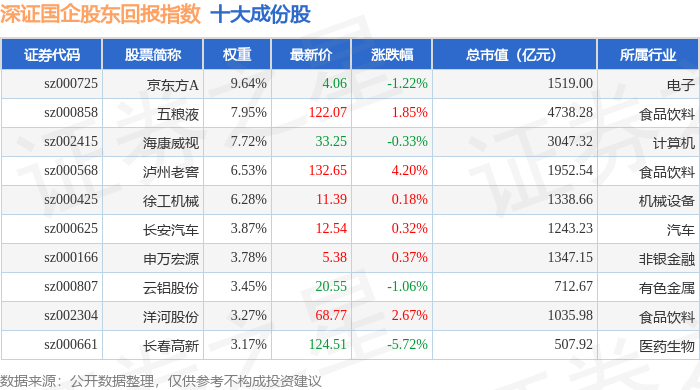 深证国企股东回报(970064)指数十大成份股详情如下: