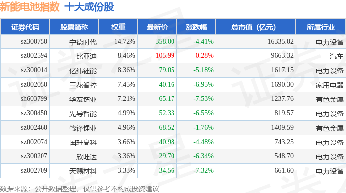 新能电池(980032)指数十大成份股详情如下: