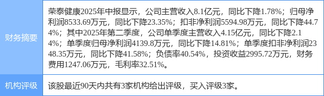 2025年8月29日,太平洋研究员孟昕,赵梦菲,金桐羽发布了对荣泰健康的研报《荣泰健康:2025H1内销双位数增长,智能健康新领域多点开花》,该研报对荣泰健康给出“买入”评级。证券之星数据中心根据近三年发布的研报数据计算,该研报作者对此股的盈利预测准确度为59.55%。