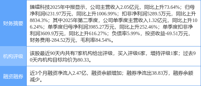 2025年9月1日,中航证券研究员滕明滔,梁晨,张超发布了对臻镭科技的研报《2025年半年报点评:半年报业绩创历史新高,有望持续受益于卫星互联网的加速建设》,该研报对臻镭科技给出“买入”评级。研报中预计公司2025-2027年的营业收入分别为4.51亿元、6.31亿元和8.50亿元,归母净利润分别为1.30亿元、1.82亿元及2.54亿元,EPS分别为0.61元、0.85元、1.18元,我们维持“买入”评级,当前股价分别对117倍、84倍及60倍PE。证券之星数据中心根据近三年发布的研报数据计算,该研报作者对此股的盈利预测准确度为13.88%。