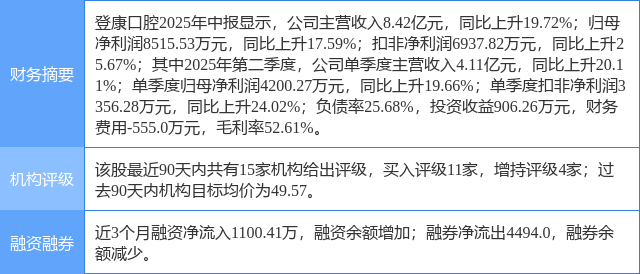 今日登康口腔(001328)涨6.53%,收盘报40.6元。