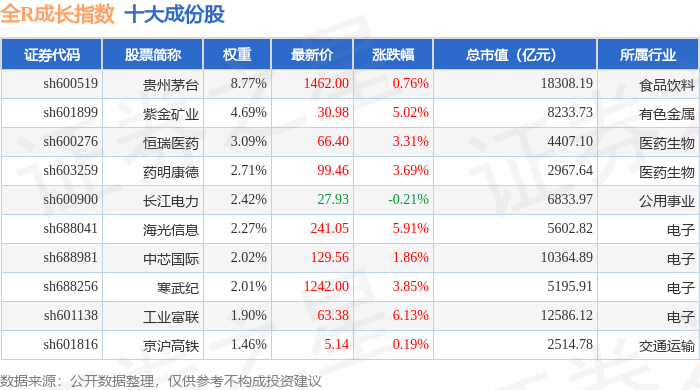 证券之星消息,10月15日,全R成长(000059)指数报收于3391.02点,涨1.65%,成交4658.64亿元,换手率1.88%。当日该指数成份股中,上涨的有287家,金盘科技以20.0%的涨幅领涨,下跌的有79家,长城军工以7.36%的跌幅领跌。