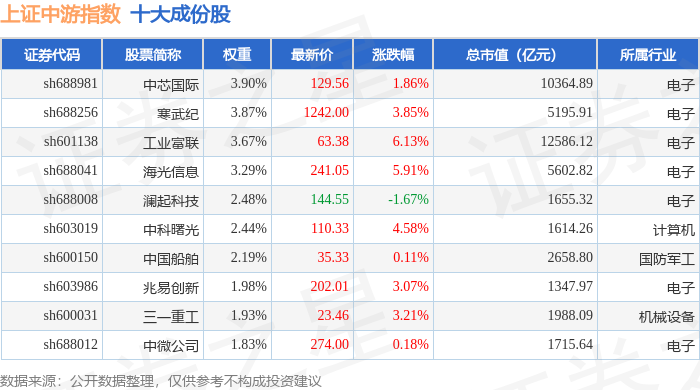 上证中游(000095)指数十大成份股详情如下:
