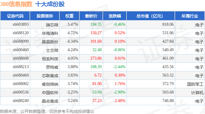 380信息(000111)指数十大成份股详情如下: