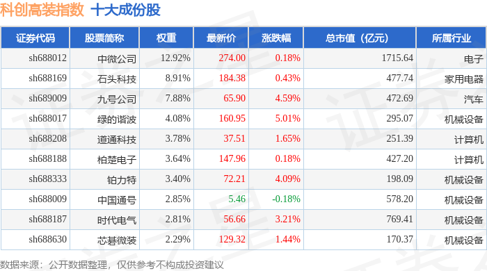 证券之星消息,10月15日,科创高装(000687)指数报收于1290.98点,涨1.96%,成交205.53亿元,换手率1.53%。当日该指数成份股中,上涨的有42家,航宇科技以8.42%的涨幅领涨,下跌的有7家,国光电气以4.37%的跌幅领跌。