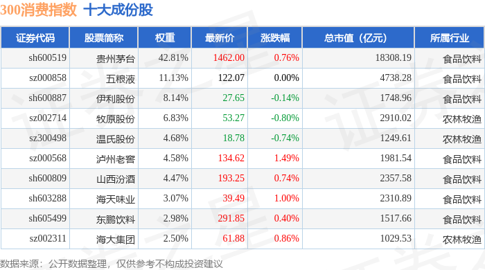 资金流向方面,300消费(000912)指数成份股当日主力资金净流入合计9.33亿元,游资资金净流出合计3.0亿元,散户资金净流出合计6.33亿元。成份股资金流向详情见下表: