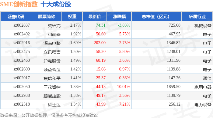 证券之星消息,10月15日,SME创新(399017)指数报收于4863.24点,涨2.36%,成交1365.19亿元,换手率3.16%。当日该指数成份股中,上涨的有93家,良信股份以10.04%的涨幅领涨,下跌的有6家,奥普光电以10.01%的跌幅领跌。