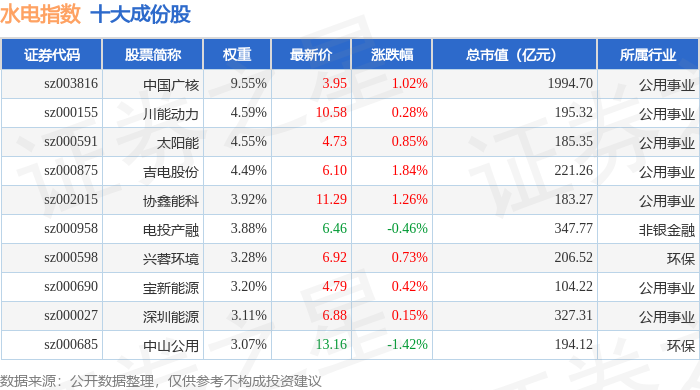 近10日内水电指数(399234)成份股做了调整,新纳入了1只股票。