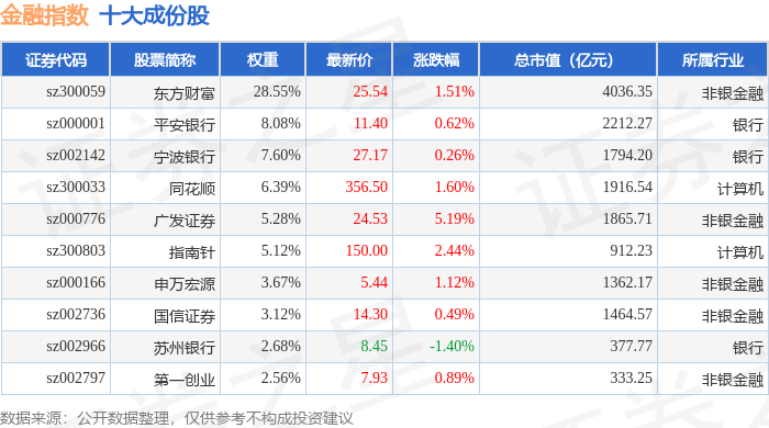 金融指数(399240)十大成份股详情如下: