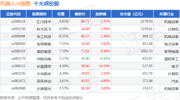 资金流向方面,机器人50(399283)指数成份股当日主力资金净流入合计7.49亿元,游资资金净流出合计6.77亿元,散户资金净流出合计7119.3万元。成份股资金流向详情见下表: