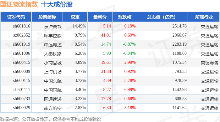 资金流向方面,国证物流(399353)指数成份股当日主力资金净流出合计1169.34万元,游资资金净流出合计1176.16万元,散户资金净流入合计2345.49万元。成份股资金流向详情见下表: