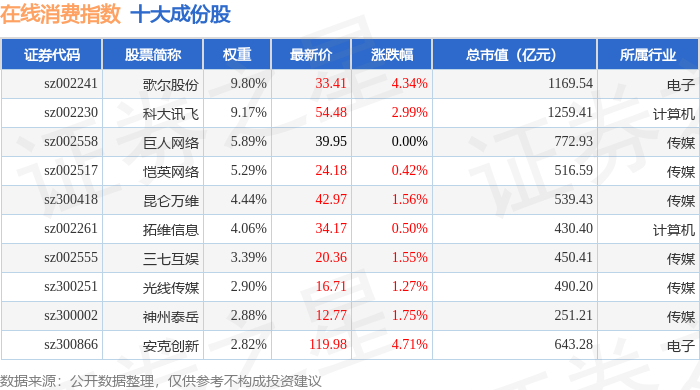 资金流向方面,在线消费(399361)指数成份股当日主力资金净流出合计1.56亿元,游资资金净流出合计4.21亿元,散户资金净流入合计5.76亿元。成份股资金流向详情见下表: