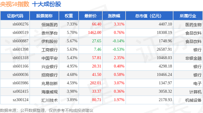 证券之星消息,10月15日,央视50(399550)指数报收于7961.36点,涨1.41%,成交766.76亿元,换手率0.44%。当日该指数成份股中,上涨的有40家,信维通信以11.31%的涨幅领涨,下跌的有9家,汇顶科技以2.51%的跌幅领跌。