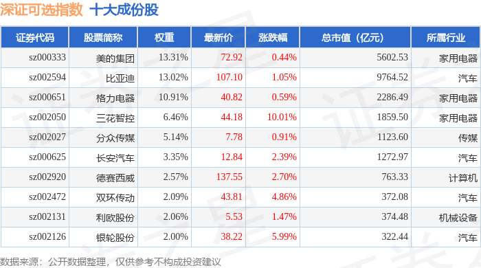 深证可选(399616)指数十大成份股详情如下: