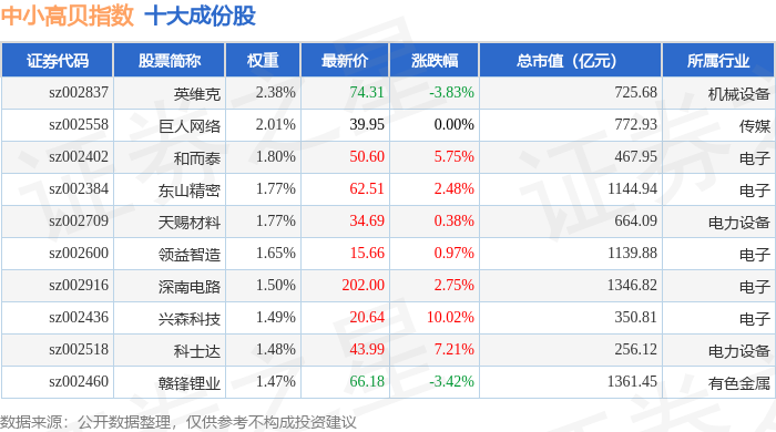 中小高贝(399664)指数十大成份股详情如下: