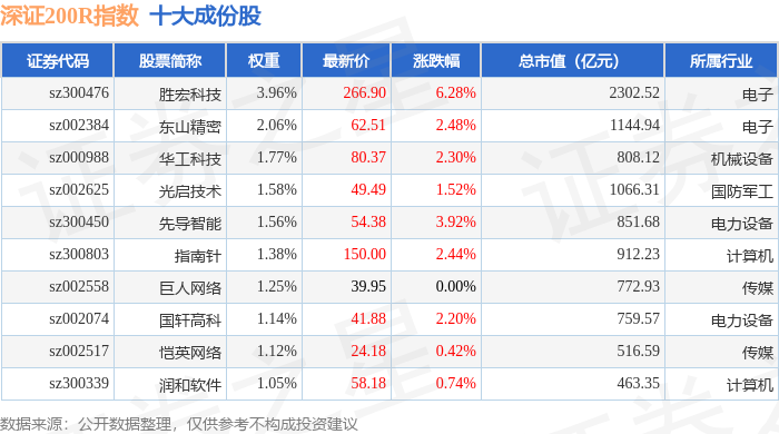 深证200R(399679)指数十大成份股详情如下: