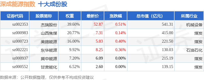 深成能源(399680)指数十大成份股详情如下: