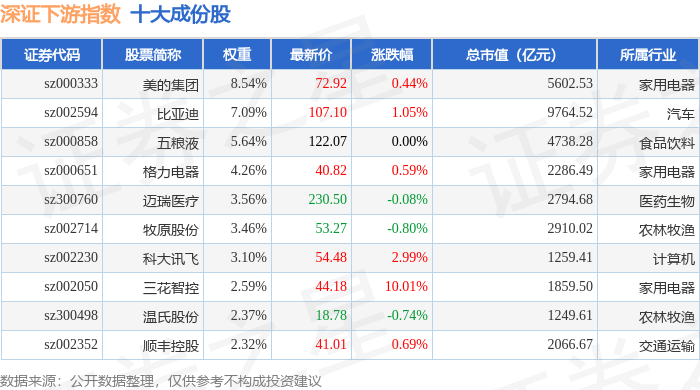 证券之星消息,10月15日,深证下游(399706)指数报收于5910.67点,涨1.24%,成交920.14亿元,换手率1.61%。当日该指数成份股中,上涨的有83家,三花智控以10.01%的涨幅领涨,下跌的有15家,招商港口以1.54%的跌幅领跌。