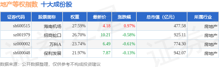 证券之星消息,10月15日,地产等权(399983)指数报收于2249.89点,跌0.06%,成交32.11亿元,换手率1.18%。当日该指数成份股中,上涨的有1家,海南机场以0.97%的涨幅领涨,下跌的有3家,万科A以0.61%的跌幅领跌。