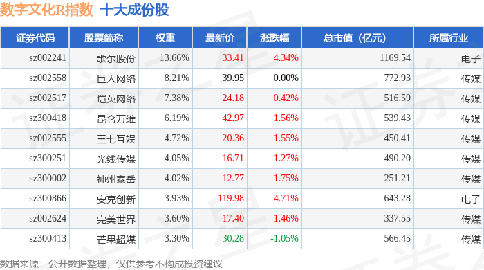 资金流向方面,数字文化R(470047)指数成份股当日主力资金净流入合计6155.23万元,游资资金净流出合计6.71亿元,散户资金净流入合计6.09亿元。成份股资金流向详情见下表: