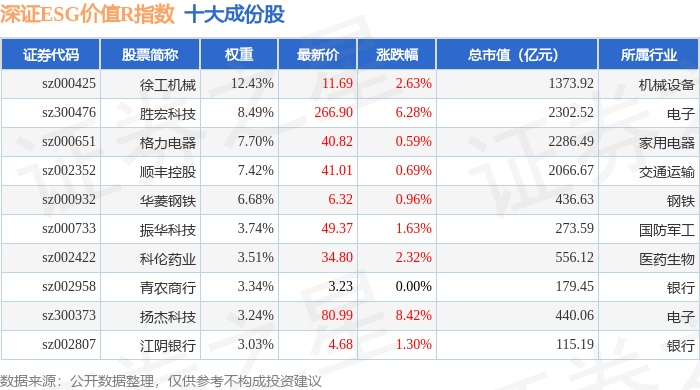 深证ESG价值R(470061)指数十大成份股详情如下: