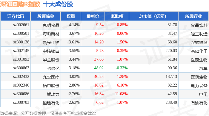 深证回购R(470063)指数十大成份股详情如下: