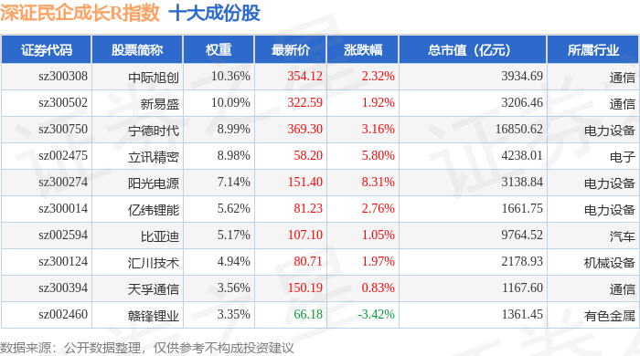 证券之星消息,10月15日,深证民企成长R(470071)指数报收于4063.28点,涨2.44%,成交1260.67亿元,换手率3.36%。当日该指数成份股中,上涨的有41家,震裕科技以11.28%的涨幅领涨,下跌的有9家,锦浪科技以7.57%的跌幅领跌。