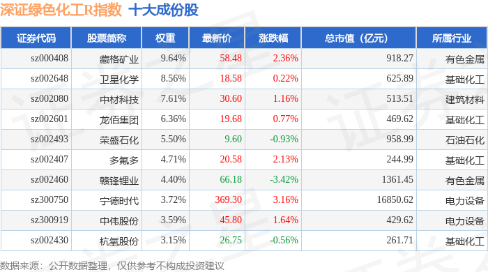 深证绿色化工R(470076)指数十大成份股详情如下: