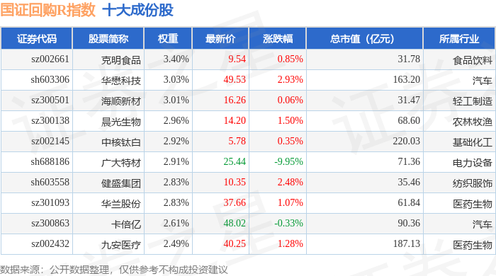 国证回购R(480063)指数十大成份股详情如下: