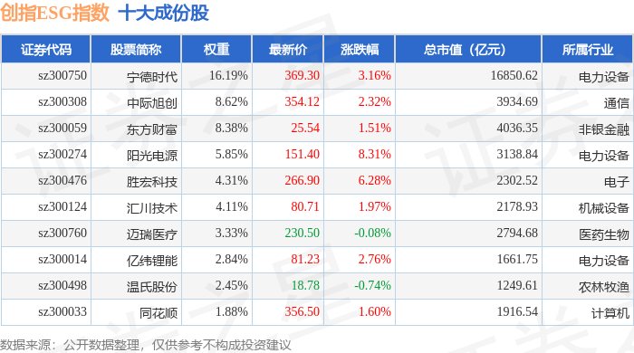 资金流向方面,创指ESG(970028)指数成份股当日主力资金净流入合计7.81亿元,游资资金净流出合计15.5亿元,散户资金净流入合计7.69亿元。成份股资金流向详情见下表: