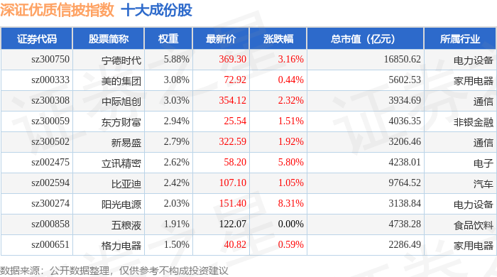 深证优质信披(970065)指数十大成份股详情如下: