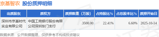 证券之星消息,京基智农(000048)10月15日公开信息显示,股东深圳市京基时代实业有限公司向中国工商银行股份有限公司深圳东门支行合计质押3500.0万股,占总股本6.6%。质押详情见下表: