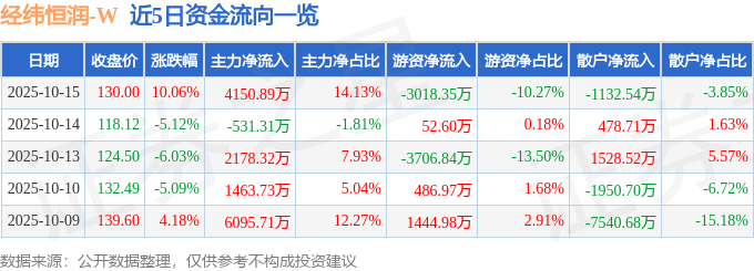 证券之星消息,截至2025年10月15日收盘,经纬恒润(688326)报收于130.0元,上涨10.06%,换手率2.62%,成交量2.36万手,成交额2.94亿元。