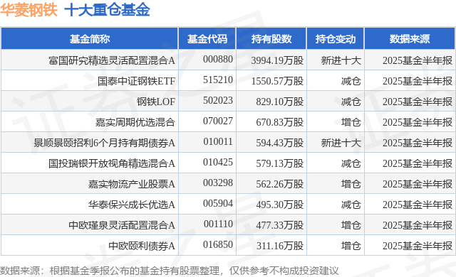 重仓华菱钢铁的前十大公募基金请见下表: