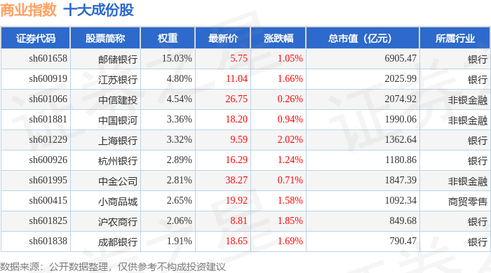 证券之星消息,10月16日,商业指数(000005)报收于2923.79点,涨0.25%,成交443.07亿元,换手率1.06%。当日该指数成份股中,上涨的有52家,海通发展以10.03%的涨幅领涨,下跌的有119家,航天宏图以8.99%的跌幅领跌。
