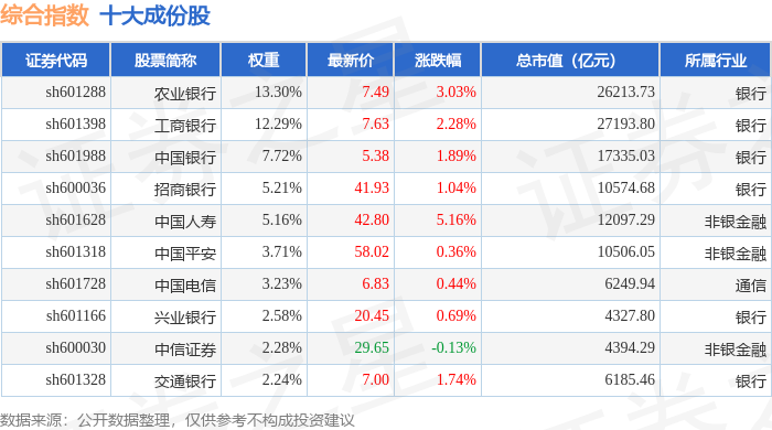 综合指数(000008)十大成份股详情如下: