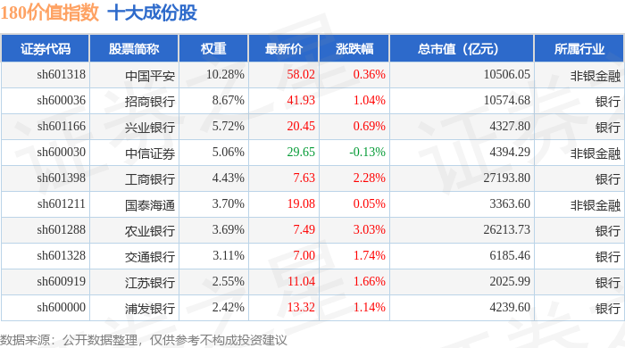 证券之星消息,10月16日,180价值(000029)指数报收于4368.56点,涨0.93%,成交844.11亿元,换手率0.42%。当日该指数成份股中,上涨的有42家,中煤能源以7.35%的涨幅领涨,下跌的有16家,中国中冶以3.05%的跌幅领跌。