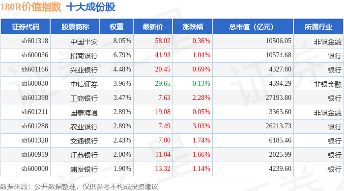 180R价值(000031)指数十大成份股详情如下: