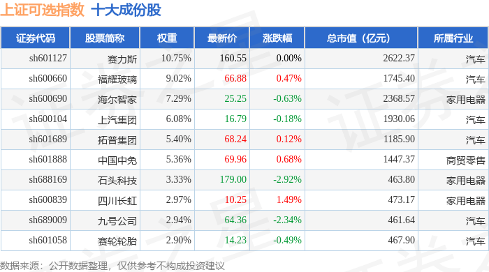 上证可选(000035)指数十大成份股详情如下: