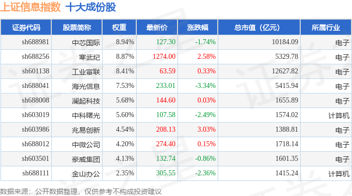 上证信息(000039)指数十大成份股详情如下: