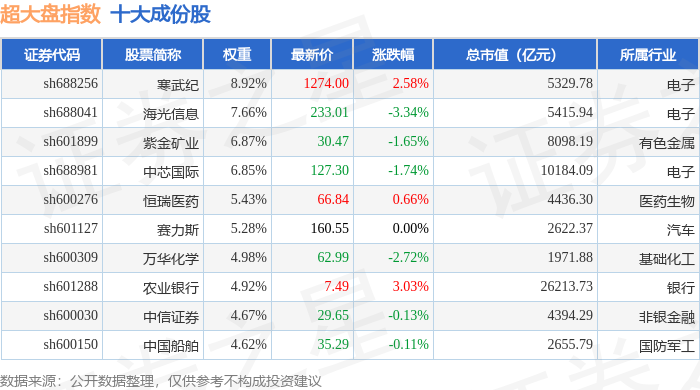 资金流向方面,超大盘(000043)指数成份股当日主力资金净流出合计6.42亿元,游资资金净流出合计2.94亿元,散户资金净流入合计9.35亿元。成份股资金流向详情见下表: