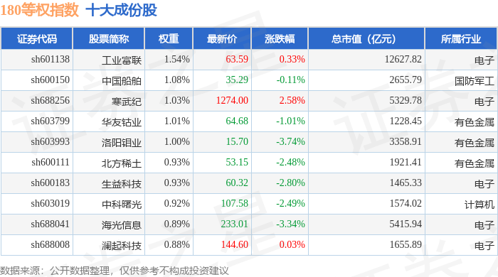 证券之星消息,10月16日,180等权(000051)指数报收于9404.87点,跌0.02%,成交3069.37亿元,换手率0.62%。当日该指数成份股中,上涨的有99家,中煤能源以7.35%的涨幅领涨,下跌的有75家,恒立液压以4.48%的跌幅领跌。